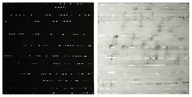 «Nacht- / Tagzeit I», Doppelbild, je 99 x 99 cm, Acryl auf Leinwand, 2006
